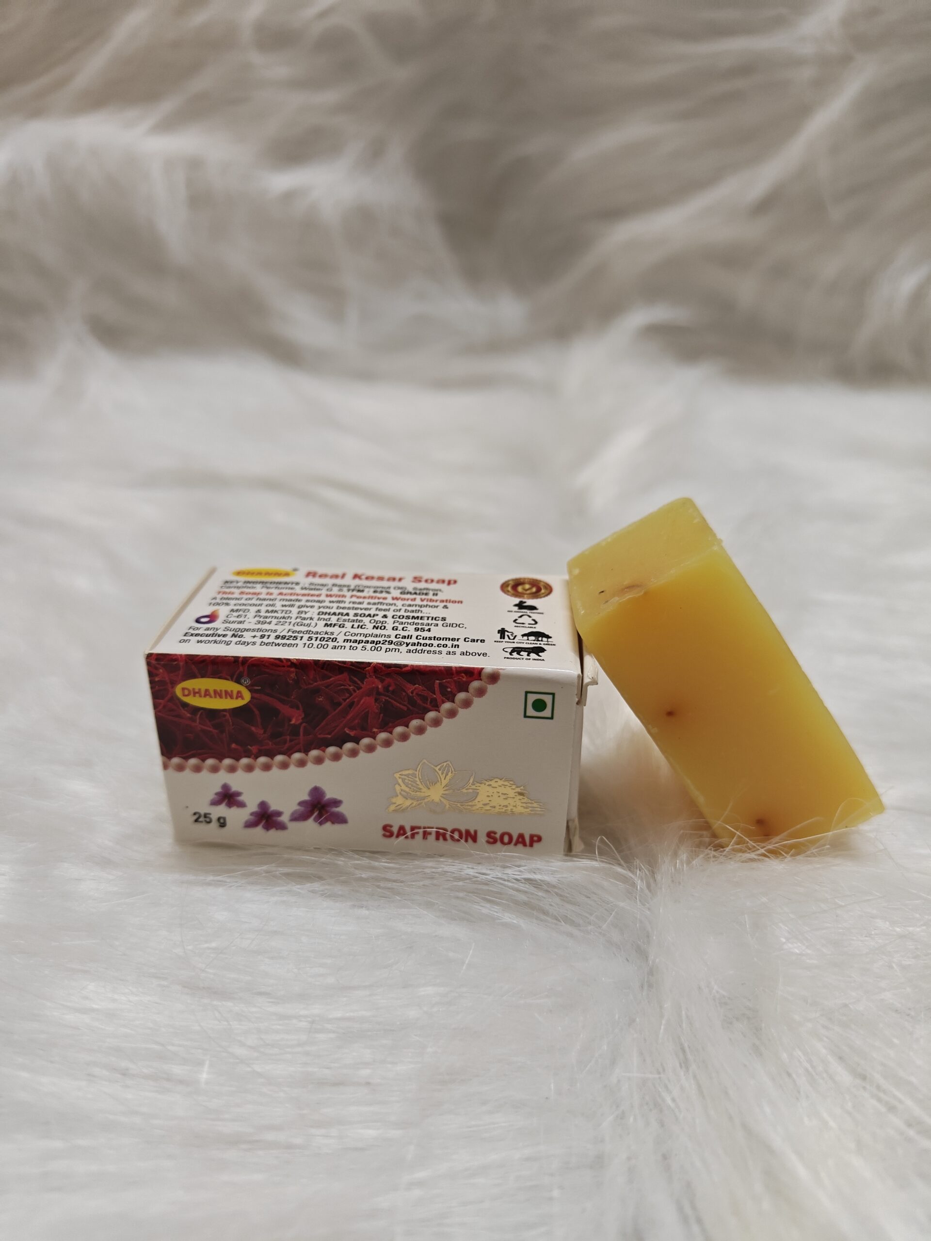 - This specially crafted soap is made using a blend of premium ingredients like saffron, sandalwood and camphor combined with the recitation of sacred mantras during its preparation.